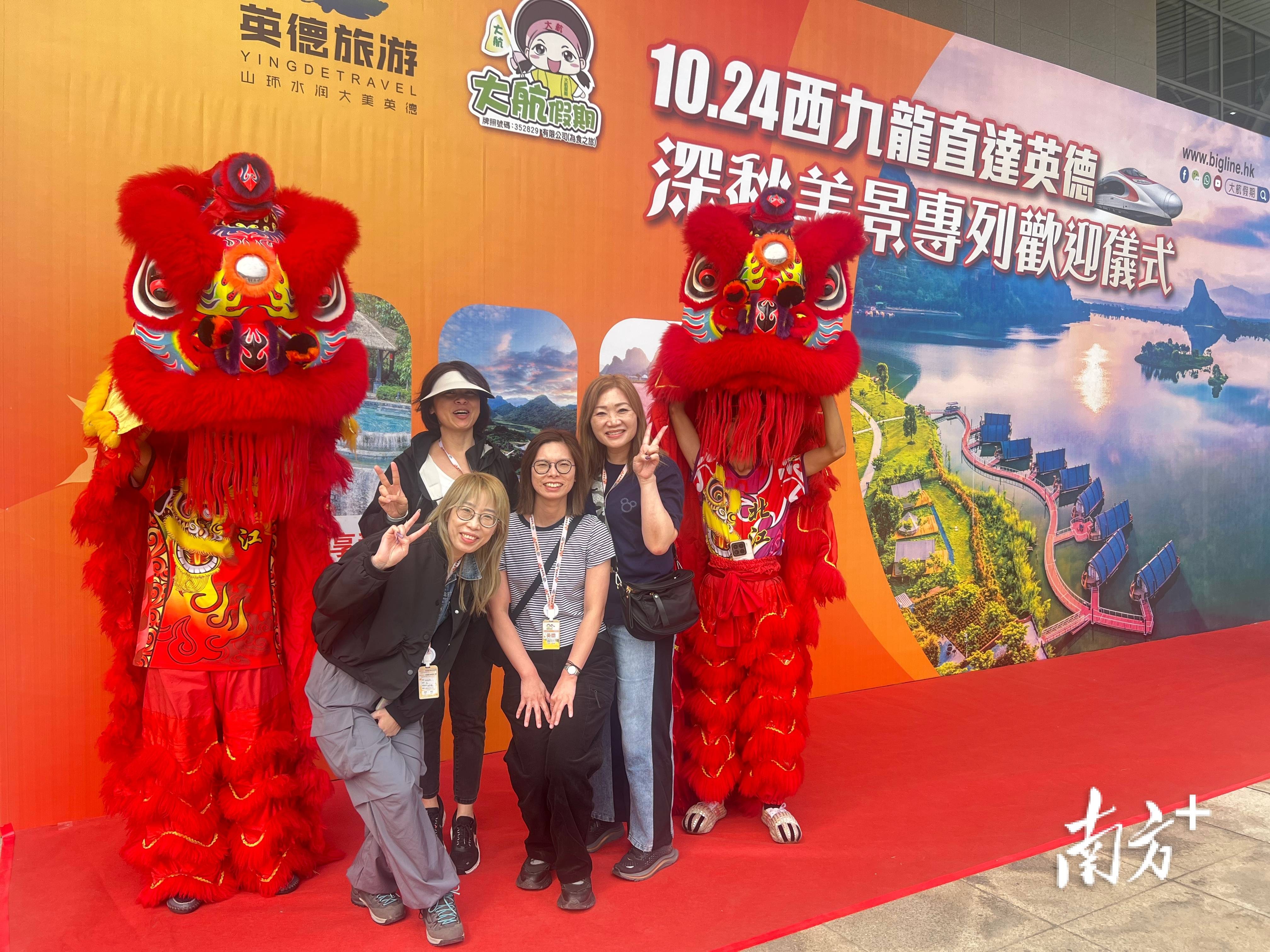 当天上午的英德西高铁站欢迎氛围拉满,舞狮队踏着欢快鼓点舞动,为香港游客送祝福;工作人员手持英德特色的伴手礼,逐一递到游客手中,让大家刚落地便感受到英德的热情。